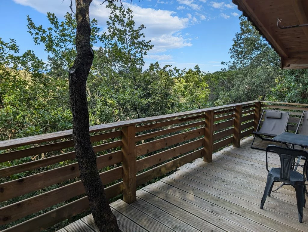 Les « Cagnas » sont les plus récentes du domaine avec ses 21 m². Perchées sur pilotis, elles sont nichées dans la végétation appaisante du domaine.
