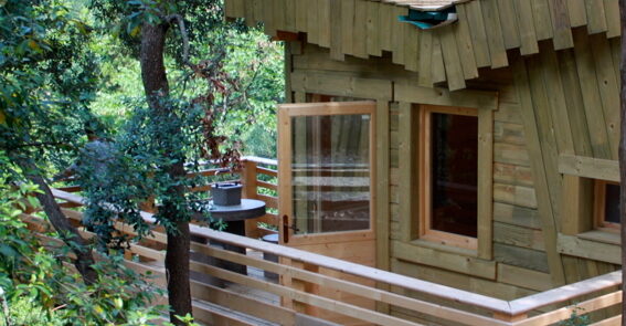 Les Cabanes dans les bois® est un hôtel un peu particulier. Ses chambres sont des cabanes et ses couloirs des sentiers. C’est le premier établissement de ce type à avoir un classement hôtelier ★★★.