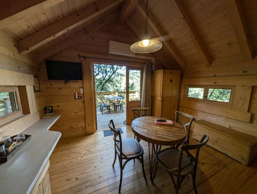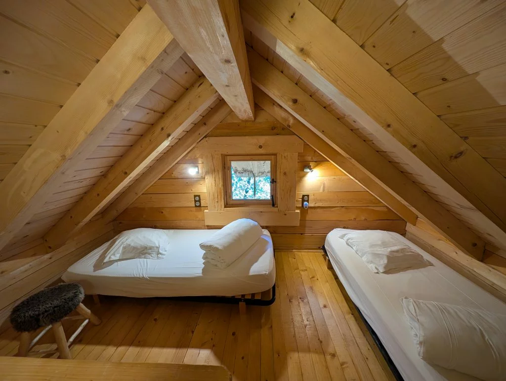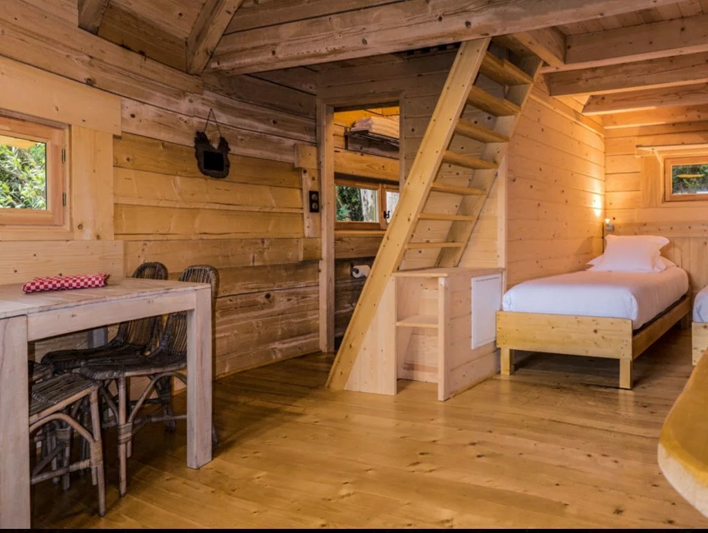 Les « Cahutes » sont des cabanes idéales pour deux couples ou une famille avec de grands enfants. Elles ont été prévues pour respecter l’intimité de chacun avec ses 39 m².