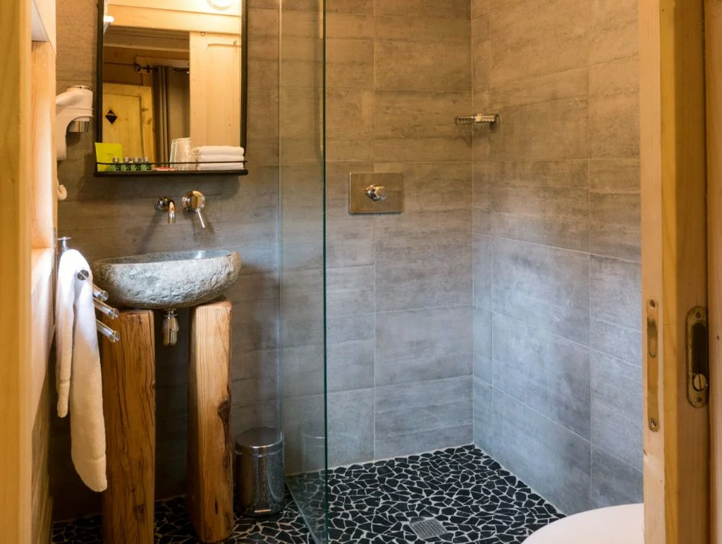 Un lit « king-size » (twins possibles) et, dans la mezzanine 2 lits de 90 x 200, climatisation réversible, bureau, minibar, télévision, 4G, machine Nespresso et bouilloire, salle de bains, douche à l’italienne, serviettes, sèche-cheveux, toilettes, terrasse et mobilier d’extérieur.