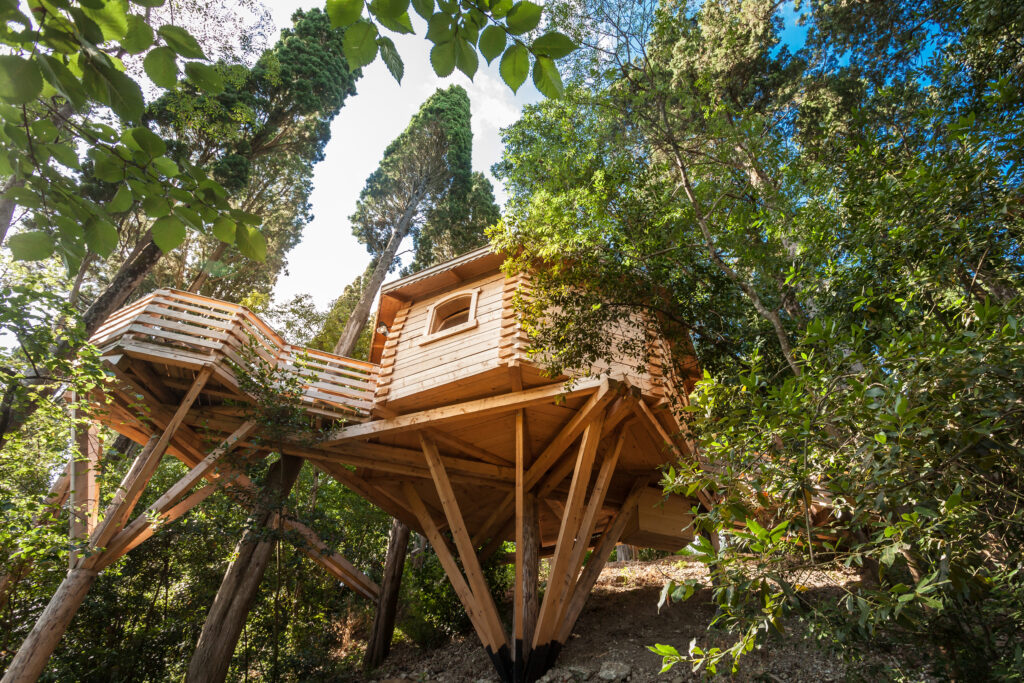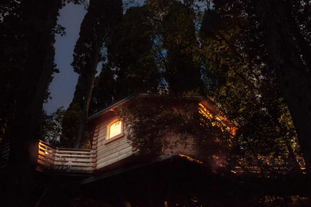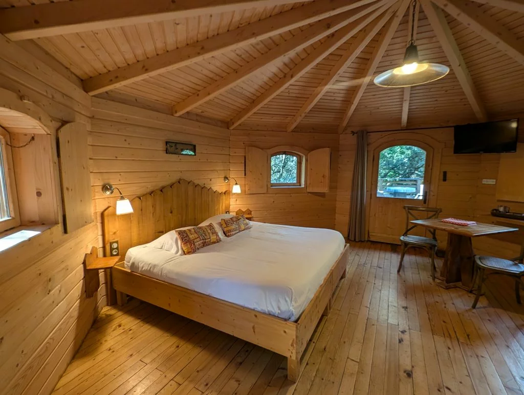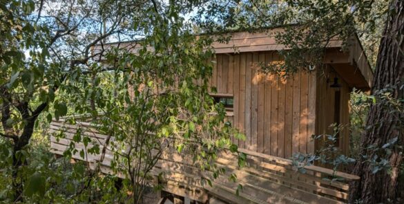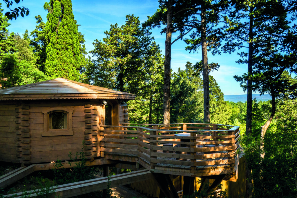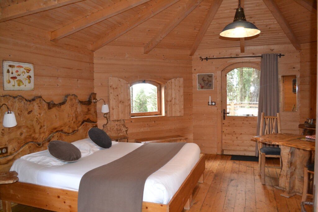 Les Cabanes dans les bois® est un hôtel un peu particulier. Ses chambres sont des cabanes et ses couloirs des sentiers. C’est le premier établissement de ce type à avoir un classement hôtelier ★★★.